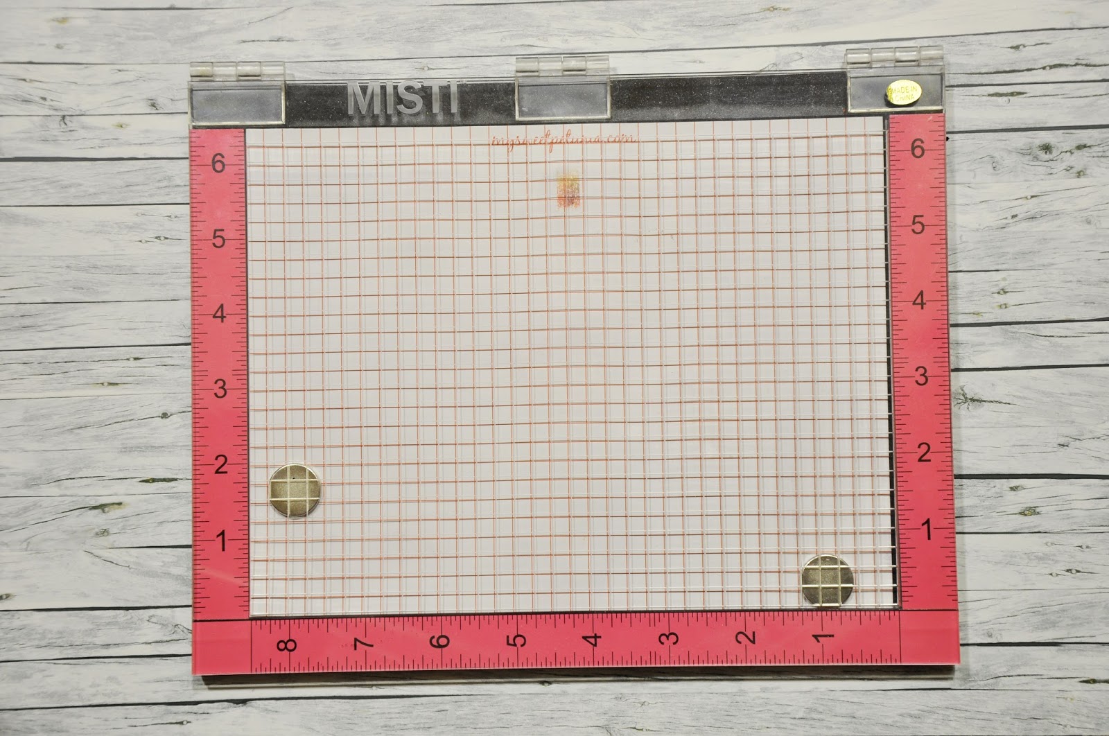 In potem Iliana iz My Sweet Petunia predstavi nekaj neverjetnega: MISTI. Pripomoček, s katerim lahko 100x odtisneš na eno in isto mesto. Če ga čisto po domače opišem je kot nekakšen velik akrilni blok, ki je pritrjen s panti na spodnjo ploščo. JA. To je to. Rešitev za mojo težavo. No, dolgo časa sem oklevala, ker seveda se ga v Sloveniji ne da dobiti, poštnina iz Amerike je grozno draga, da sploh ne pomislim na carino in vse kar sodi zraven. Imela sem že plan kako bi si naredila DIY varjanto, a nekega dne je jeza prišla do te mere, da sem ga enostavno naročila, kar je privedlo do tega, da mi je bilo vseeno koliko bom plačala, samo da ga imam. Priznam pa tudi, da me je privlačila roza barva, mreža, merilo v inčih. Pač narejen je popolno.